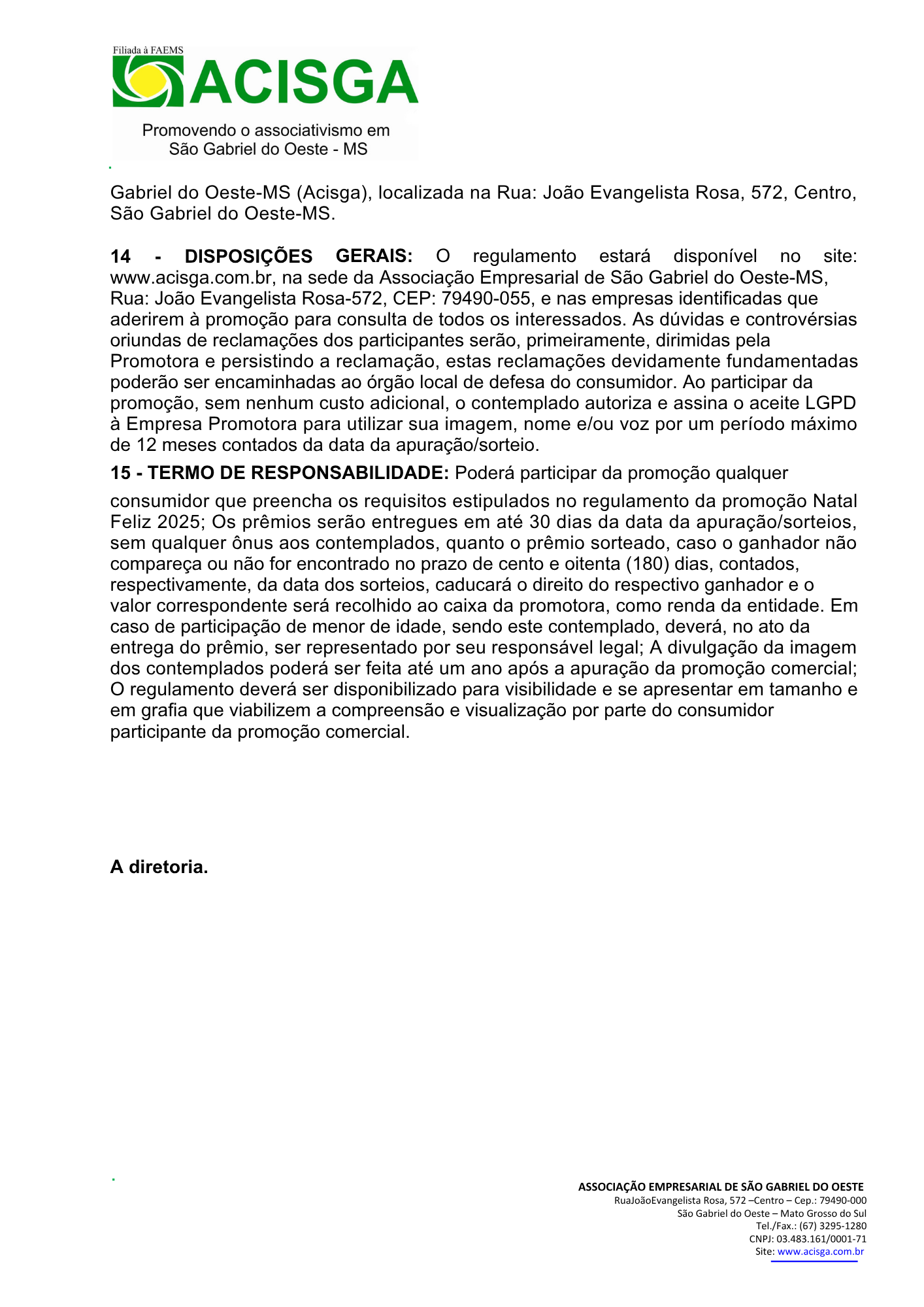 Segue o Regulamento da Promoção Natal Feliz 2025